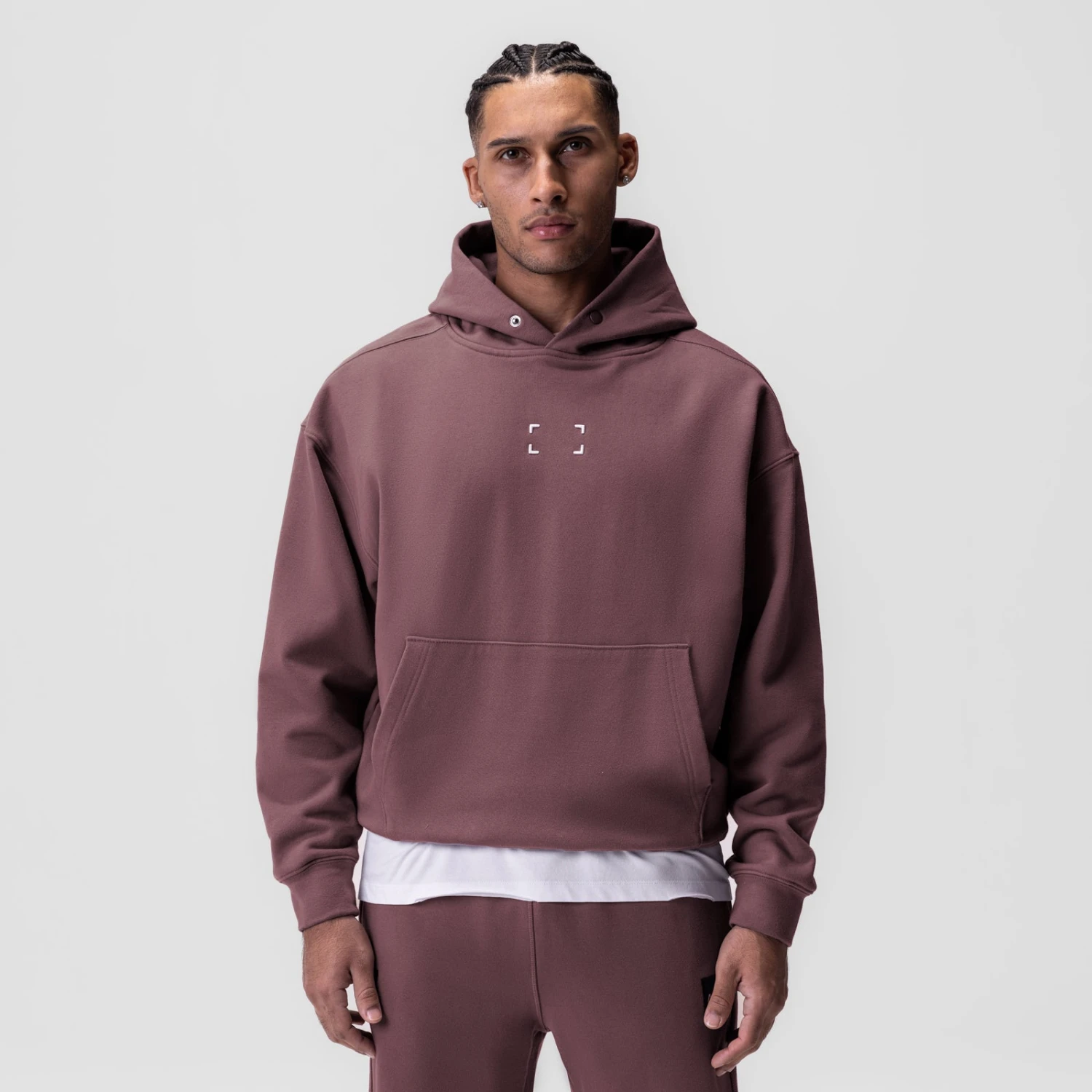 The perfect rugged training hoodie. Constructed from our signature Tech-Terry™ material, combining the soft handfeel of French Terry with incredible four-way stretch. Designed with a relaxed fit and a powder-coated metal snap button on the hood to secure the hood around the face and replace the need for drawstrings. Kangaroo pocket and embroidered bracket logo complete the design.