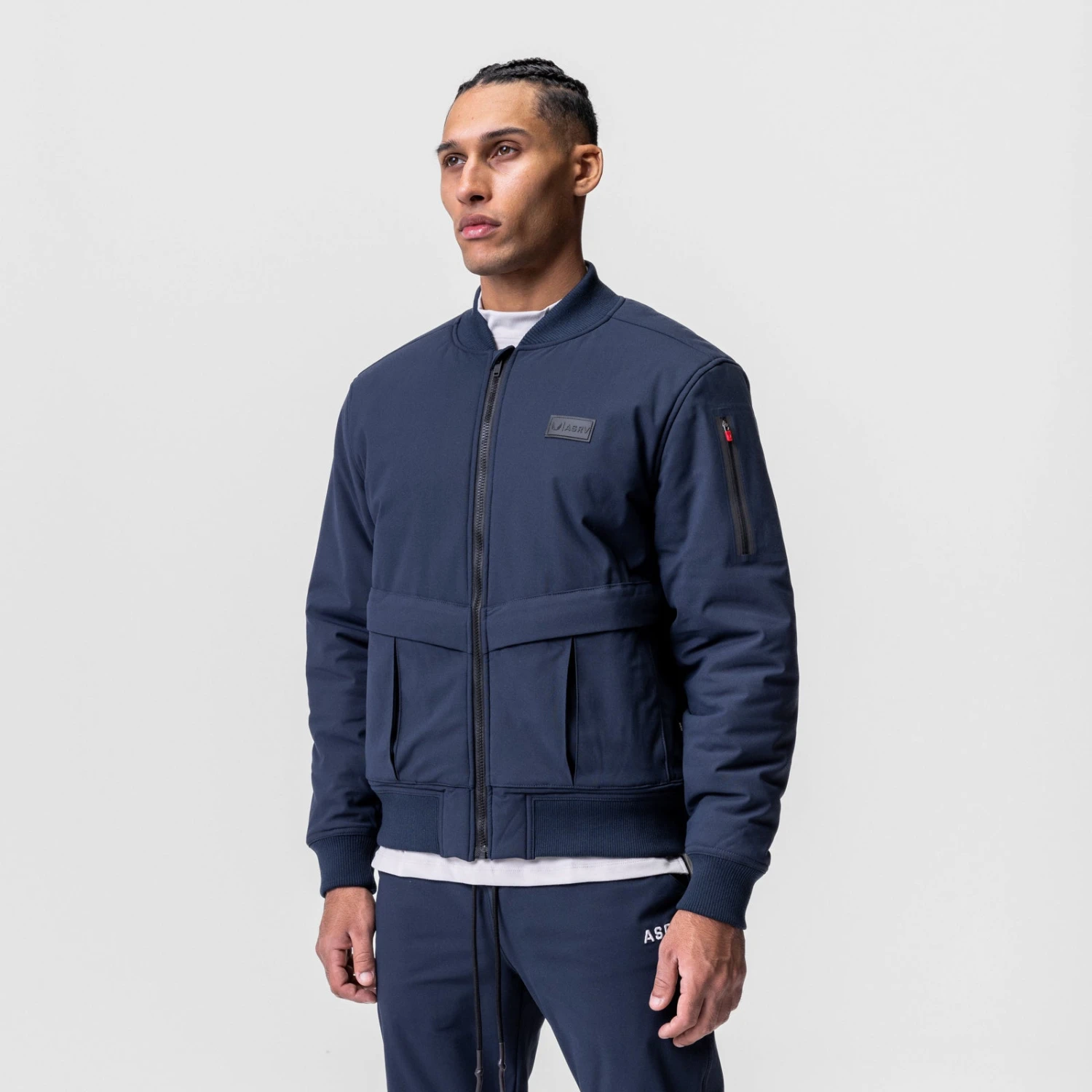 Rugged, insulated bomber jacket for cold weather exploration. The shell is constructed from our new Kinterra™ fabric – a rugged stretch material finished with a Durable Water-Resistant treatment. The jacket features slanted front pockets for the hands and a zippered arm pocket for secure storage. Finished with RiRi zipper hardware.