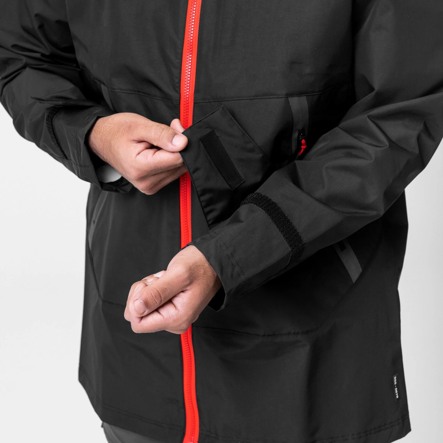 Sophisticated waterproof jacket in an extended silhouette. Distinguished by a red RiRi AQUAzip® water-repellent zipper to the front. Added length provides complete protection from the elements for navigating the city or exploring the outdoors. Featuring two large slanted zipper pockets with waterproof taping on the front and an interior media pocket on the chest.