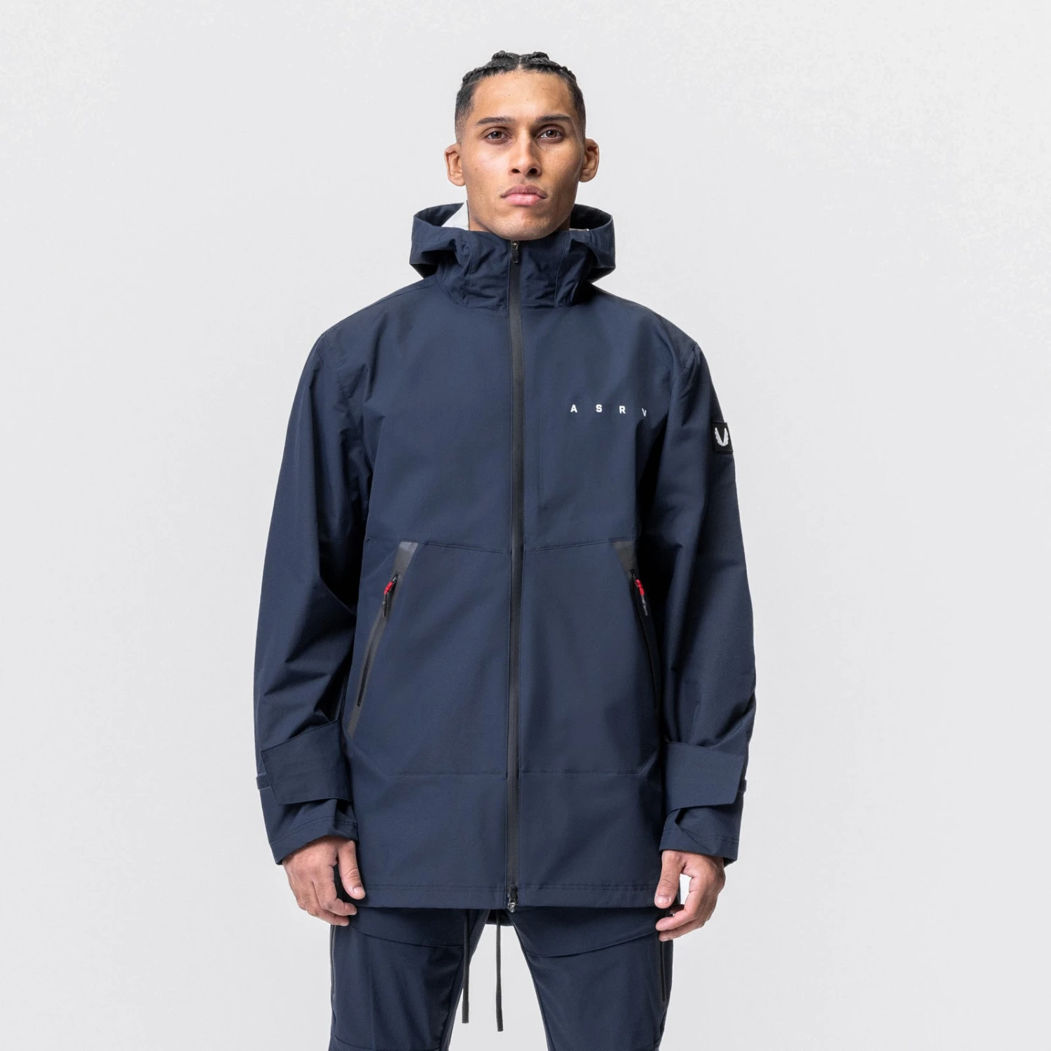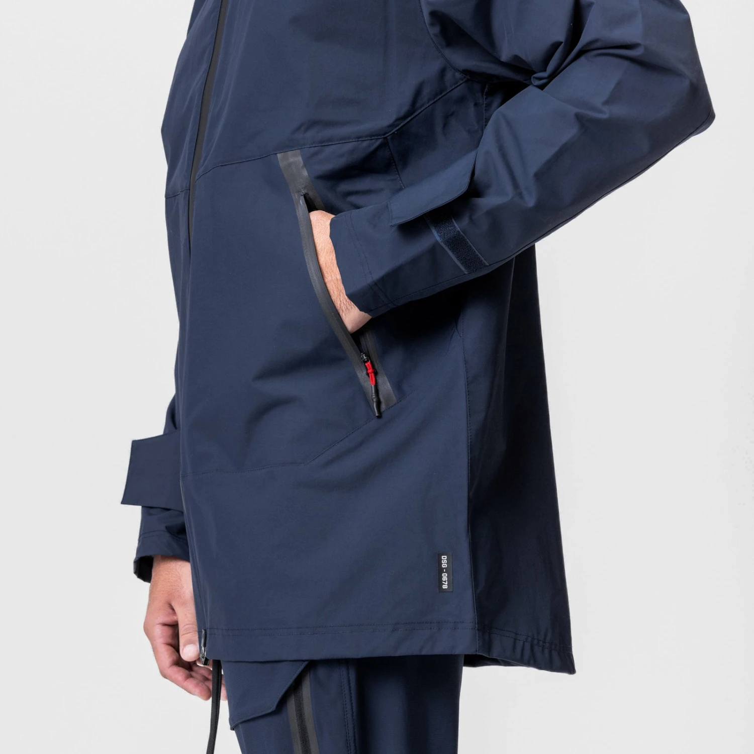Sophisticated waterproof jacket in an extended silhouette. Added length provides complete protection from the elements for navigating the city or exploring the outdoors. Featuring two large slanted zipper pockets with waterproof taping on the front and an interior media pocket on the chest.