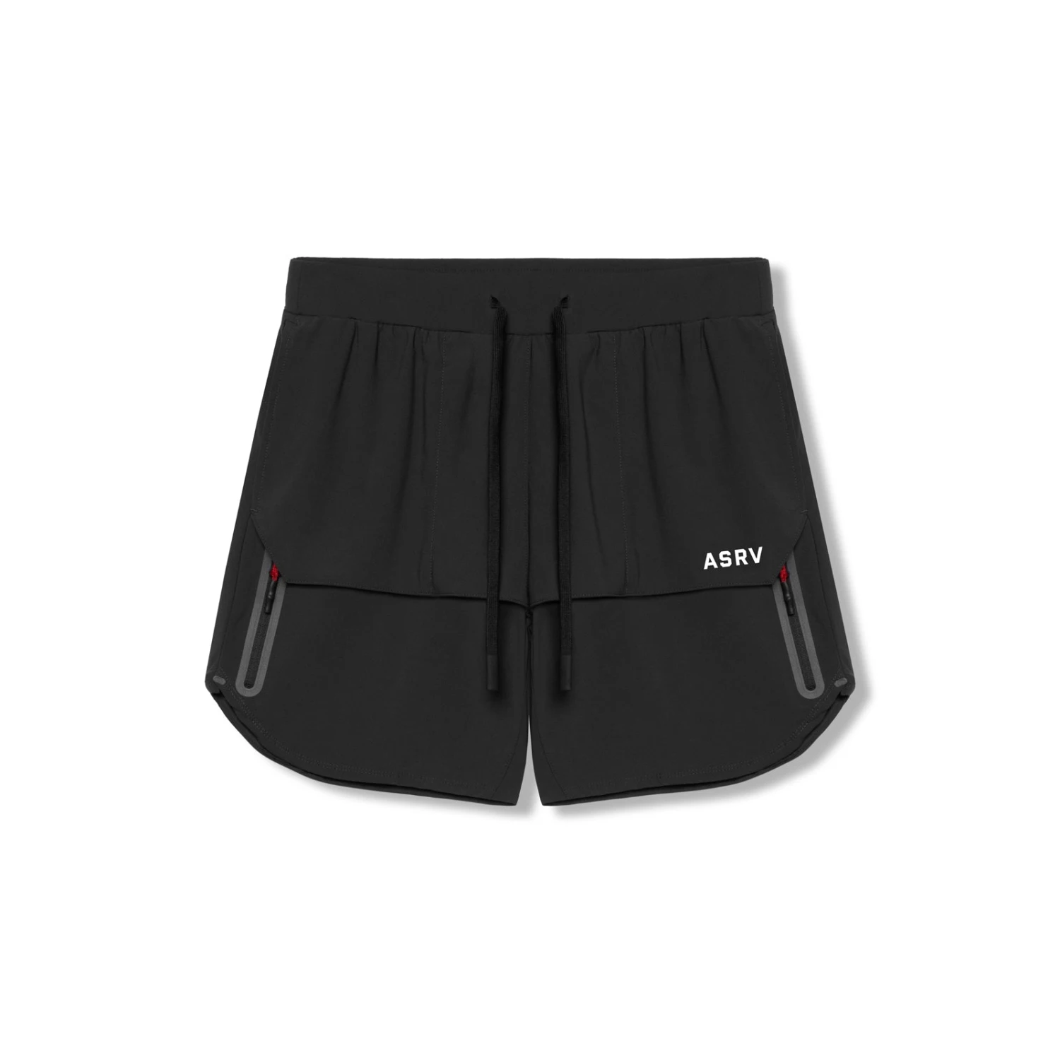 Linerless short designed with a technical front overlay panel that partially conceals two vertical zip pockets. Constructed from Tetra-Lite™ material with four-way stretch. Featuring a shirt loop on the backside and heat-pressed tack seams for durability.
