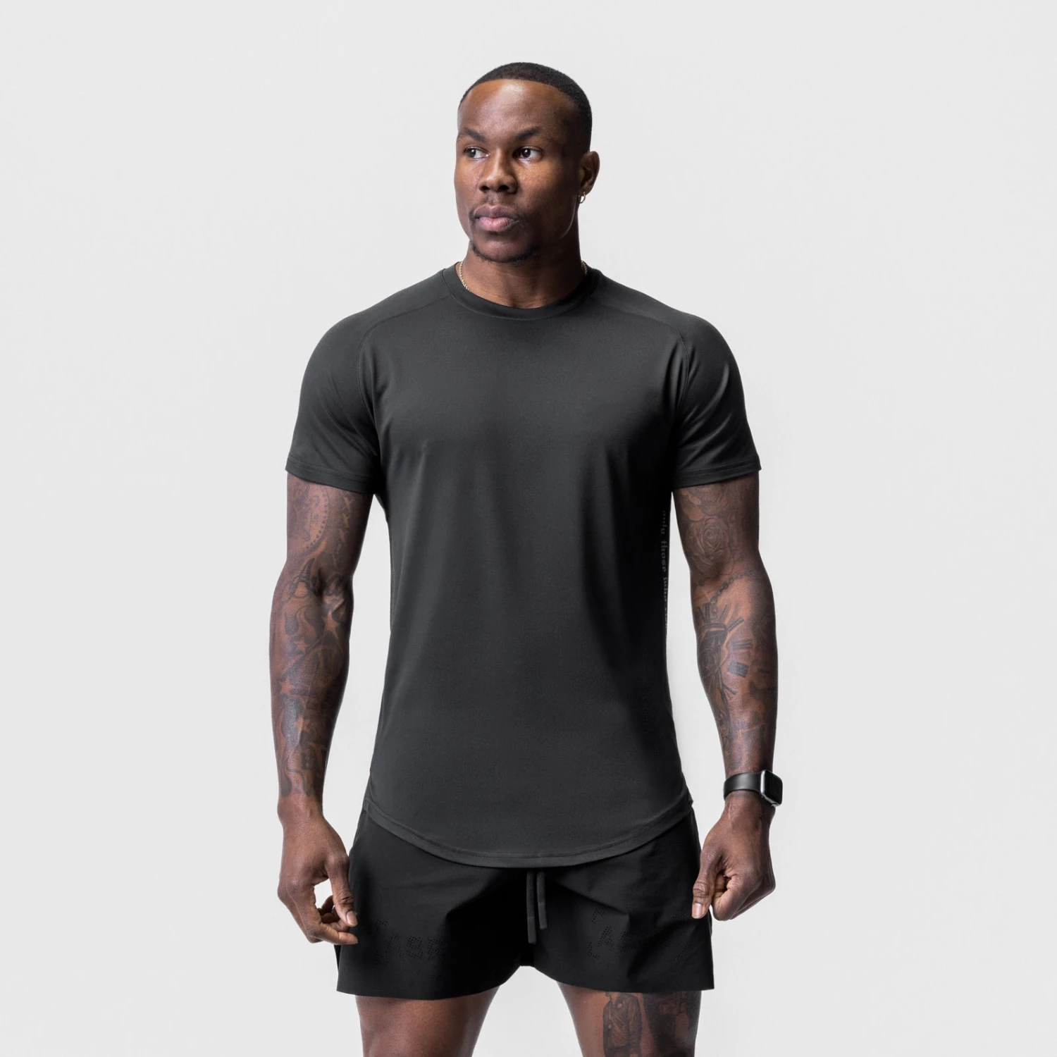 Hybrid performance tee with a Silver-Lite™ mesh back panel for sweat-wicking and breathability. The main body of the shirt is constructed from our Core fabric, a soft, brushed material with performance characteristics. Raglan sleeves, a swoop hem, and side splits with reinforced tack seams provide increased range of motion and added coverage while stretching. Finished with a silicon heat transfer logo down the spine and reflective “OTWR” branding on the side body.