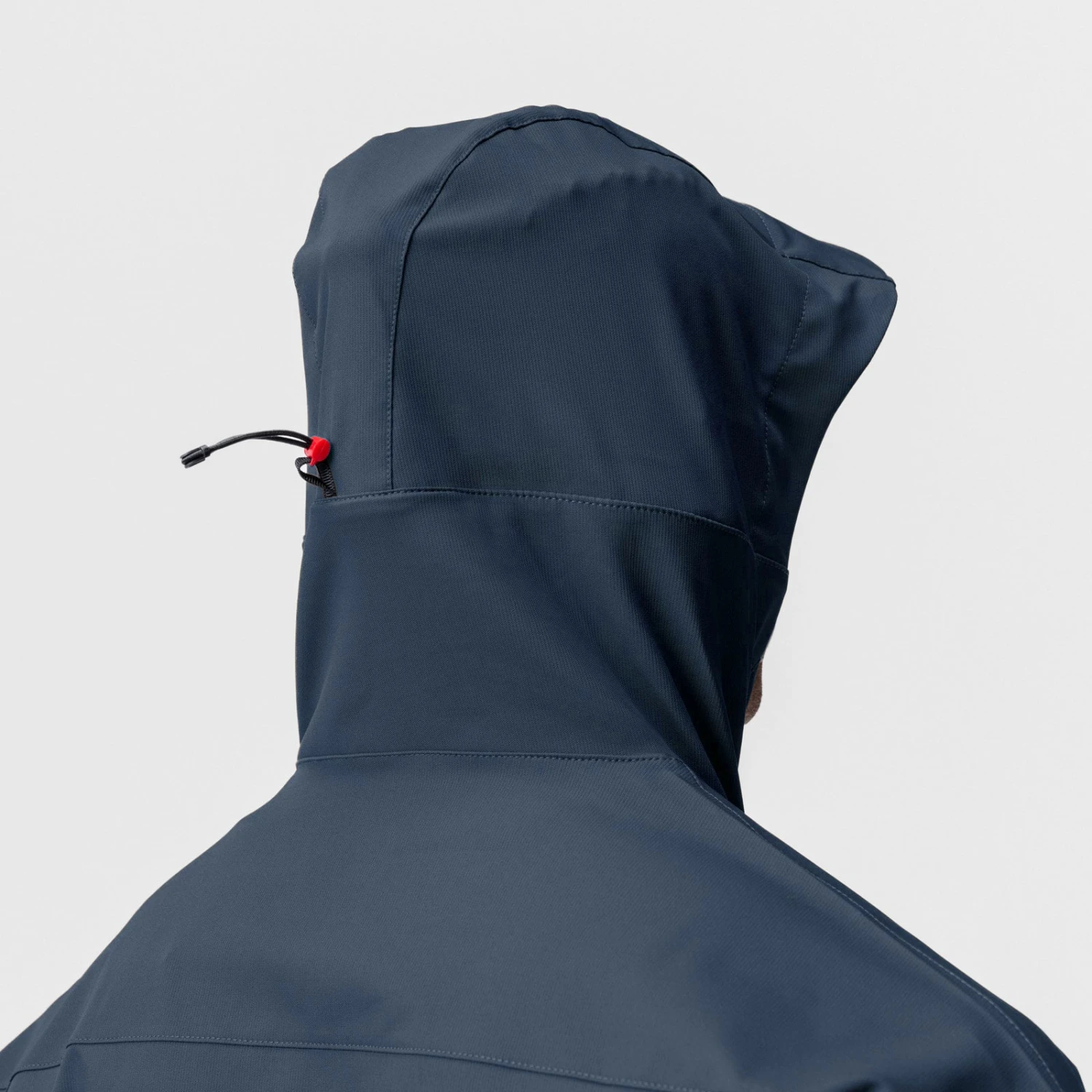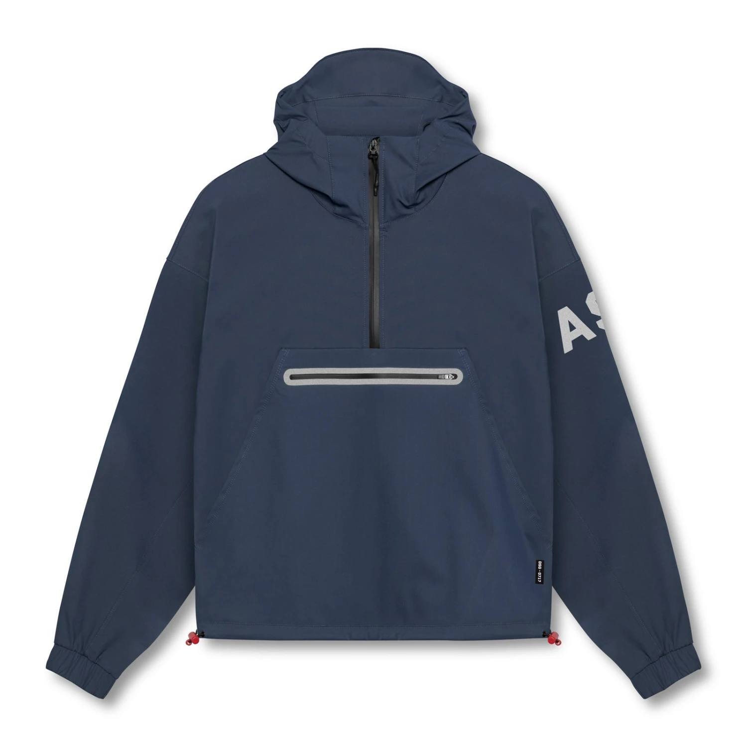 Anorak style jacket constructed from a water-resistant stretch material for transitional climates. Reflective horizontal drop pocket provides secure storage. Bottom hem features double-sided red cord locks for an adjustable fit. Hood cinch creates a secure fit for unobstructed vision. Channeled elastic sleeve cuffs. Finished with reflective arm logo and back branding for high-vis at night.
