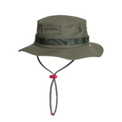 A waterproof boonie hat with functional upgrades and enhanced durability. All-around MOLLE-compatible webbing allows for custom attachments. Matte red barrel cord lock and stopper secure the 3M⢠reflective drawstrings. The inside of the hat features a hidden pocket and a sweat-prevention wrap for comfort. Finished with an inlaid patch with embroidered trim.