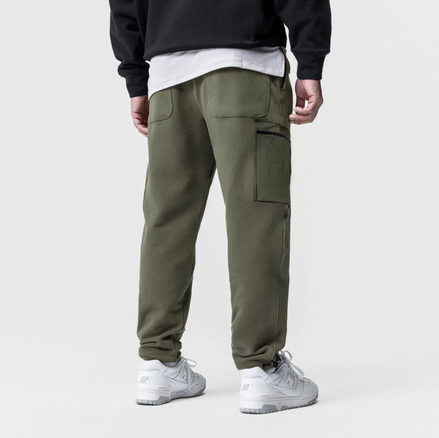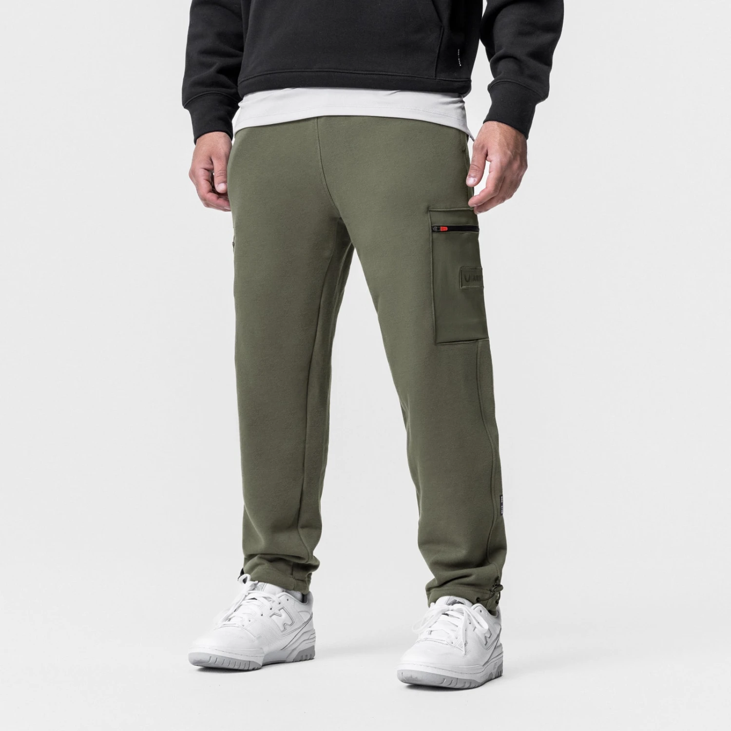 Relaxed fit jogger featuring contrast waterproof cargo pockets. Constructed from Tech-Terry™, an incredibly soft cotton blend with 4-way stretch. Ankle cord locks with metal eyelets allow for an adjustable fit. Featuring a right-side hidden zip pocket, a left-side open pocket, and two overlay back pockets.