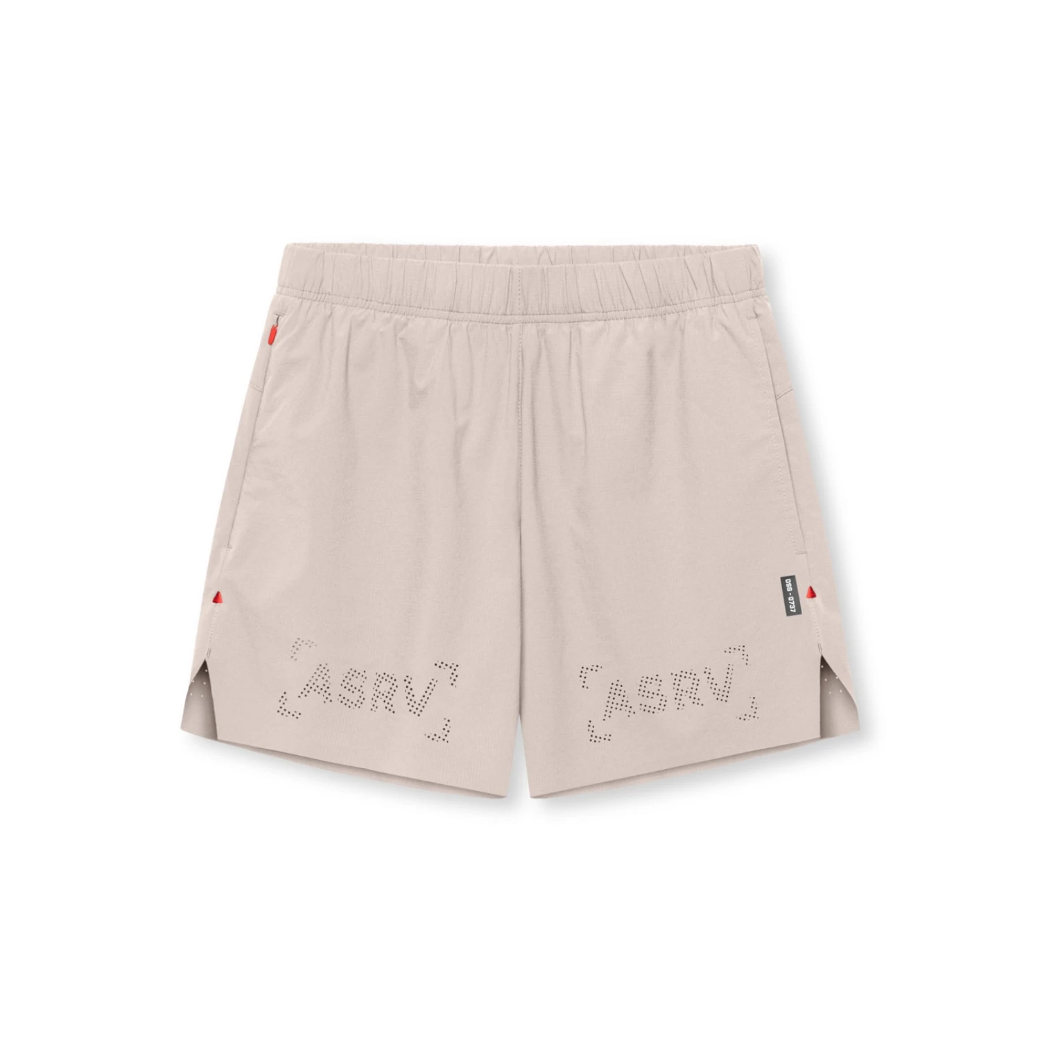 Durable training shorts in a refined aesthetic. Distinguished by laser perforated branding across the front and ventilation holes on the back. The shell is constructed from a technical ripstop material with four-way stretch. An internal brief liner provides support and moisture control. Internal drawstrings and a channeled waistband add an adjustable fit. Storage includes a hidden right-side zip pocket, a left-side open pocket, and a utility loop for a shirt or towel. Side splits with reinforced triangle tack seams enhance range of motion. Subtle reflective branding on the back of the legs completes the design
