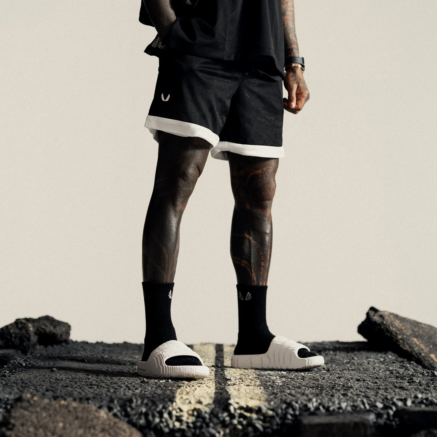 Reversible mesh shorts in a relaxed fit for training and recreation. Constructed from a double-layer SilverPlus™ mesh, providing natural breathability with anti-odor properties. Side A features two hidden zip pockets and a reverse-side color hem. Side B features two open hand pockets and is a single color throughout. Both sides features red bartack stitch reinforcement on the pockets and black inlay mesh patches with white reflective embossed logos. Drawstrings with heat-dipped tips are hidden internally on side A and visible on side B.