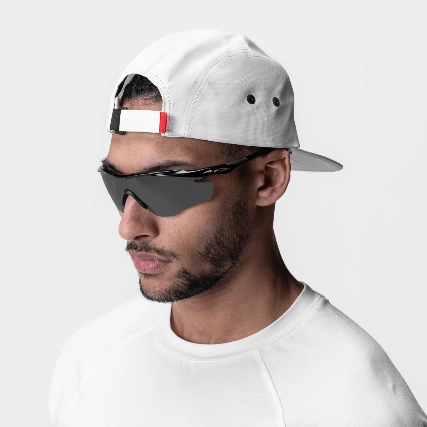 5-panel unstructured performance hat constructed from 100% recycled polyester with UV protection and sweat-wicking. Internal Jade Thermocool sweatband provides thermoregulation and sweat control around the head. Custom “only those who risk are free” internal tape. Secured with a soft-touch strap holder. Finished with a custom red rubber tab.