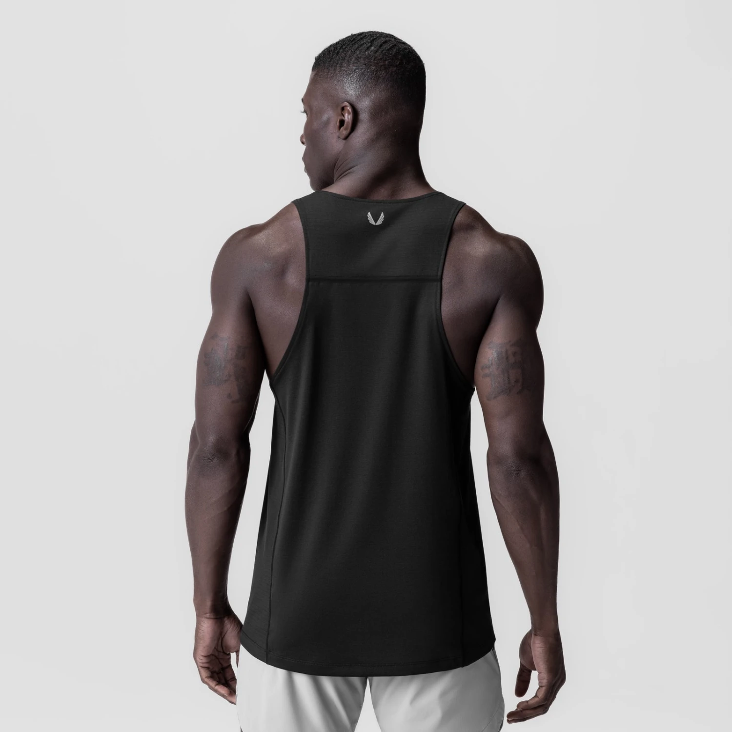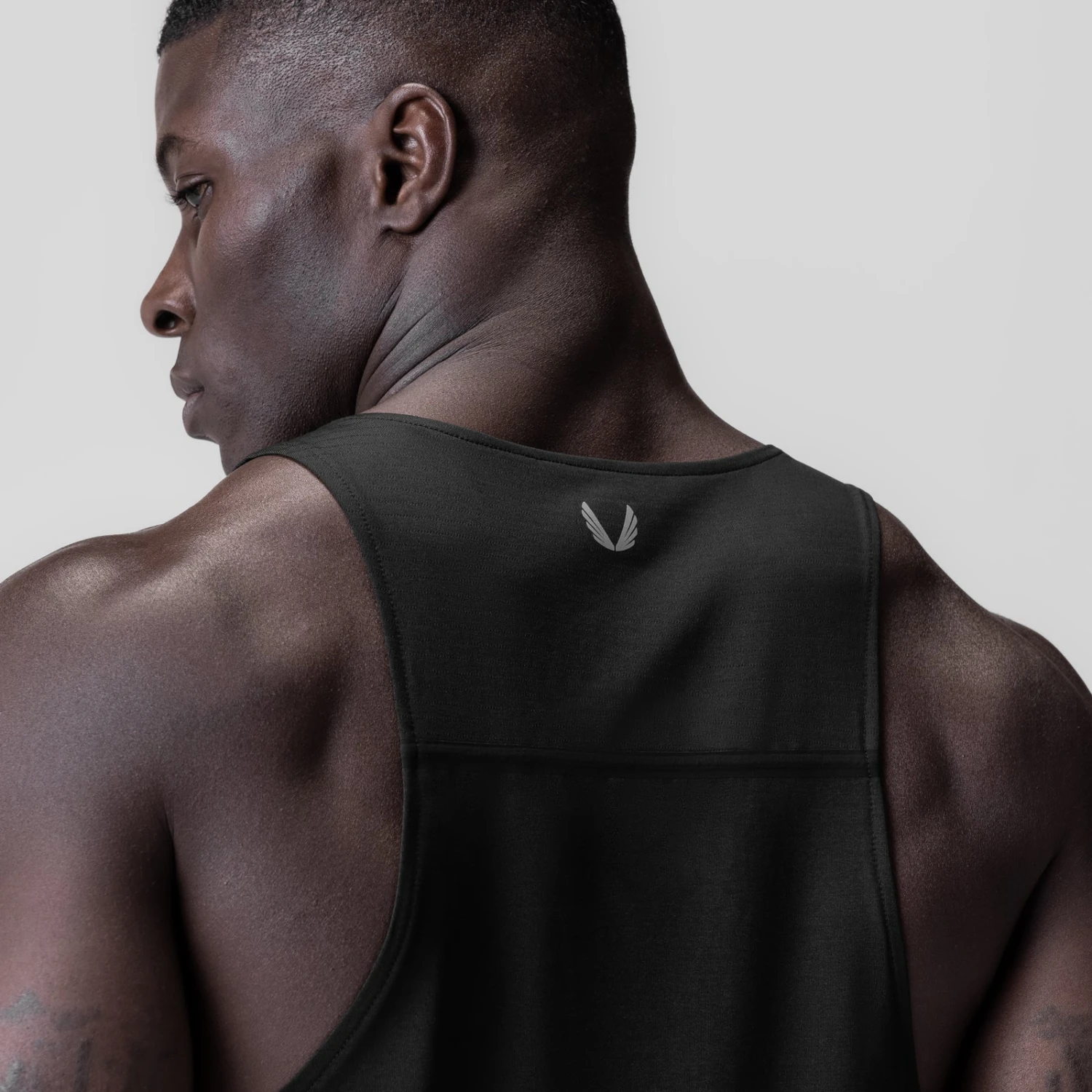 High-performance singlet tank in a standard fit. Constructed from our new 3D-Lite® 2.0 Lycra® material that integrates revolutionary Lycra® Spandex fibers, surpassing traditional elastics in strength and durability. The resulting garments are lighter, softer, and engineered for peak performance. Designed for hybrid training and running, the silhouette provides ergonomic construction for total freedom of movement. Strategic perforated panels on the shoulders and side body enhance airflow and breathability. Finished with black seam tape on the front collar and back and reflective branding on the back neck.