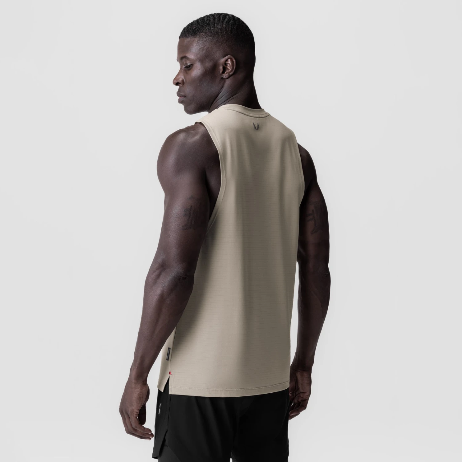 Lightweight muscle tank in a standard fit. Constructed from our new 3D-Lite® 2.0 Lycra® material that integrates revolutionary Lycra® Spandex fibers, surpassing traditional elastics in strength and durability. The resulting garments are lighter, softer, and engineered for peak performance. Designed with exaggerated arm holes for freedom of movement while training. Strategic perforation on the backside enhances airflow and breathability. Reflective branding on the chest and back neck completes the design.