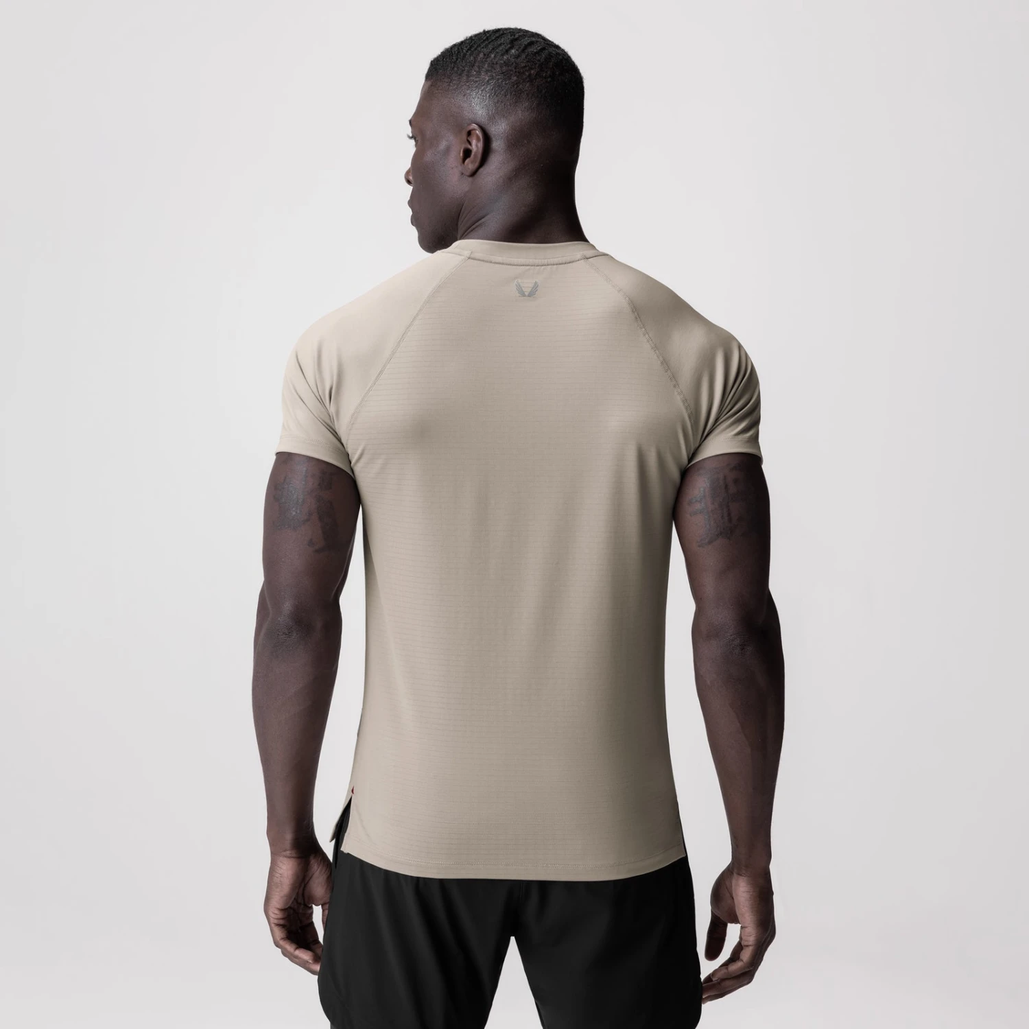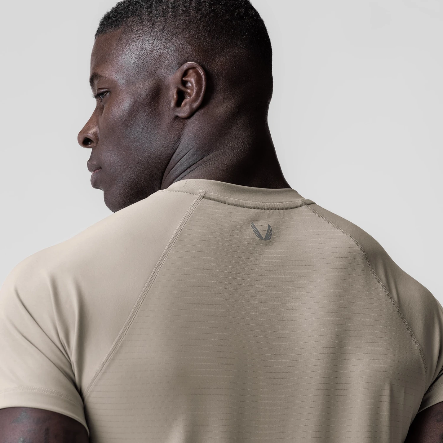 Lightweight hybrid training shirt in a slim fit. Constructed from our new 3D-Lite® 2.0 Lycra® material that integrates revolutionary Lycra® Spandex fibers, surpassing traditional elastics in strength and durability. The resulting garments are lighter, softer, and engineered for peak performance. Designed with the same fit and raglan sleeves as our bestselling Established Tee, but with a straight bottom hem for a streamlined aesthetic. Strategic perforation on the backside enhances airflow and breathability. Reflective branding on the side body and back neck completes the design.