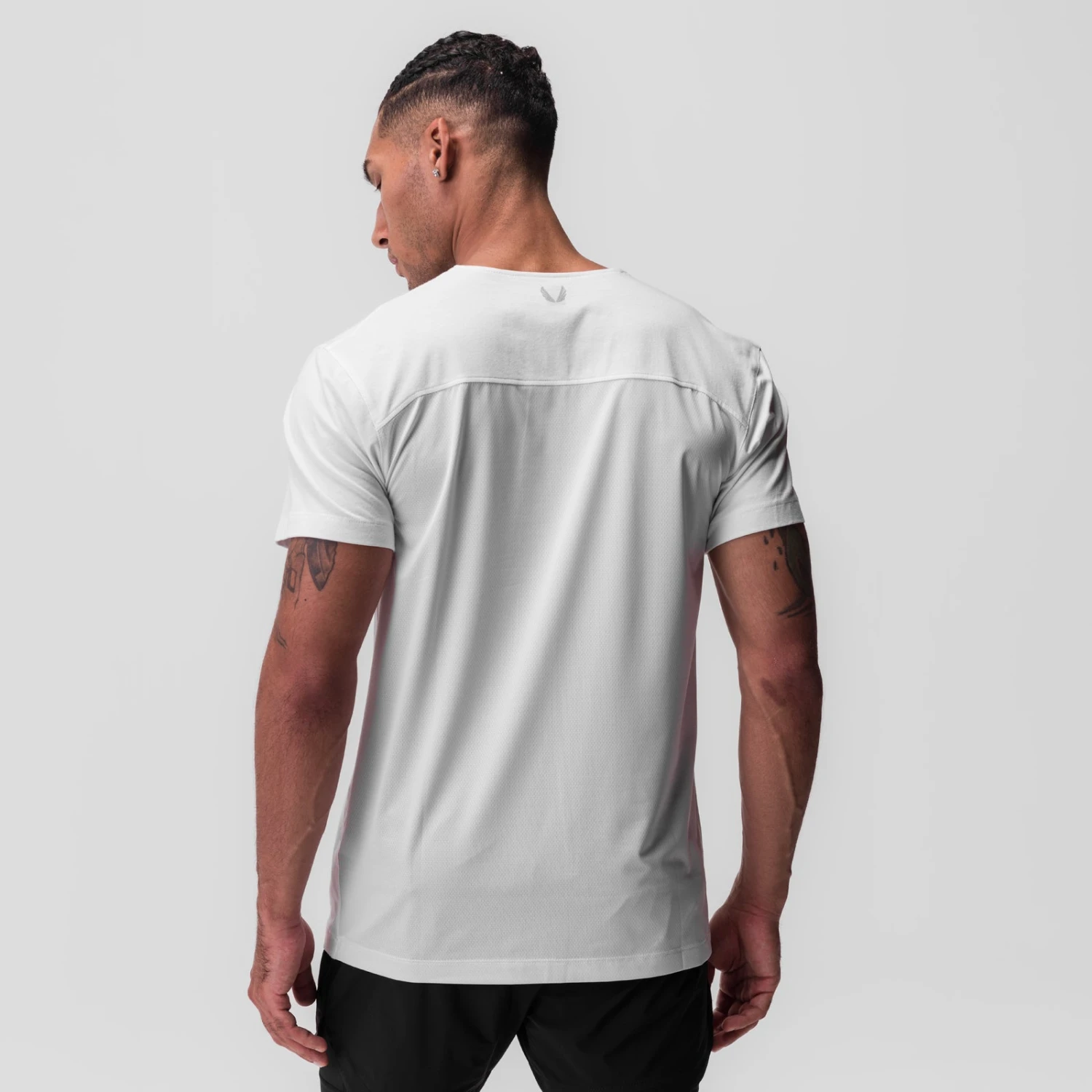 Standard fit shirt with hybrid performance capabilities. The main body is constructed from CottonPlus™, a high-performance cotton blend, and the shirt features a breathable Silver-Lite™ mesh back panel. The clean design lines and thin hem neckline offer a refined aesthetic. Finished with a subtle reflective wings logo on the back of the neck.