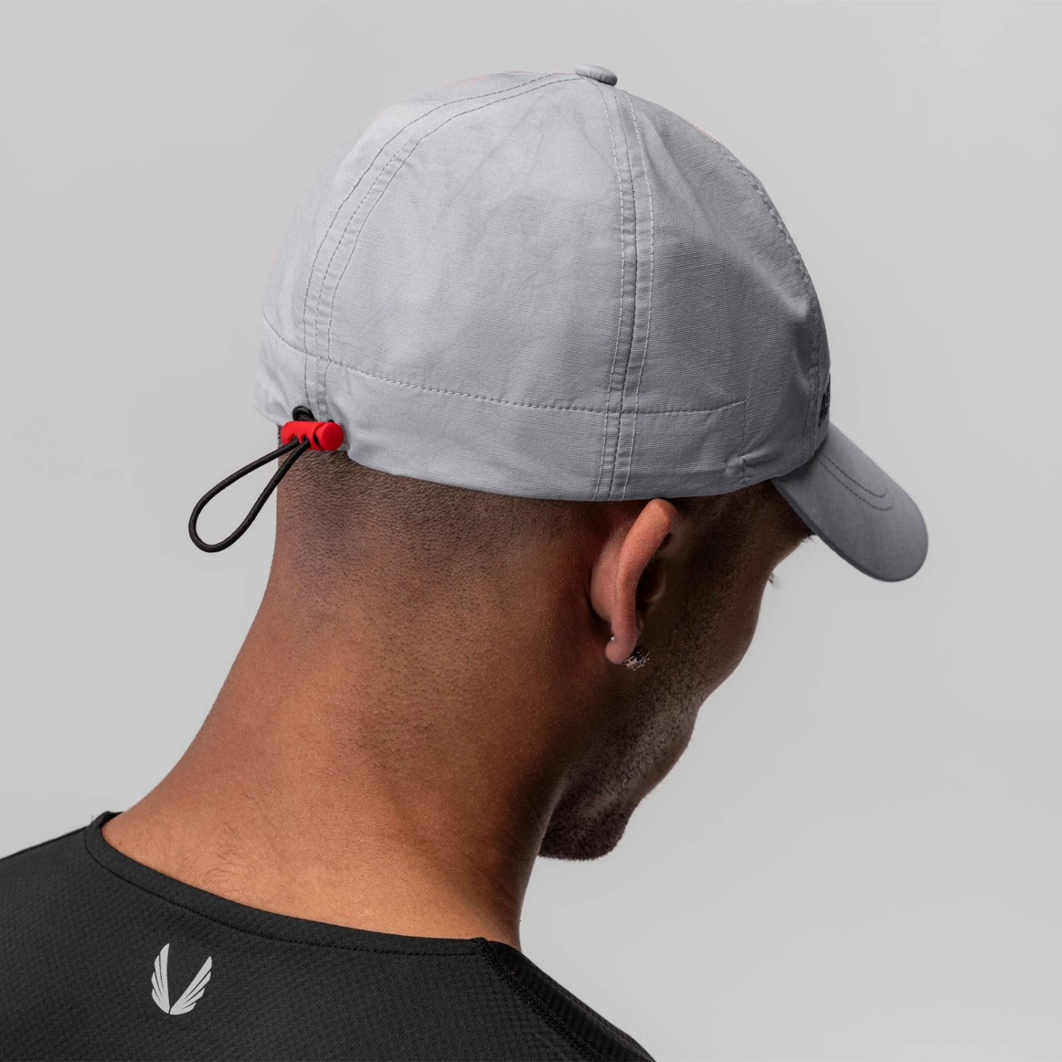 Water-repellent hat with a back cinch cord for a customizable fit. Wave-dye technique creates a unique 1-of-1 pattern on every hat. Soft touch double barrel cord lock secures the cinch. Custom internal woven label. Reflective branding adds visibility.