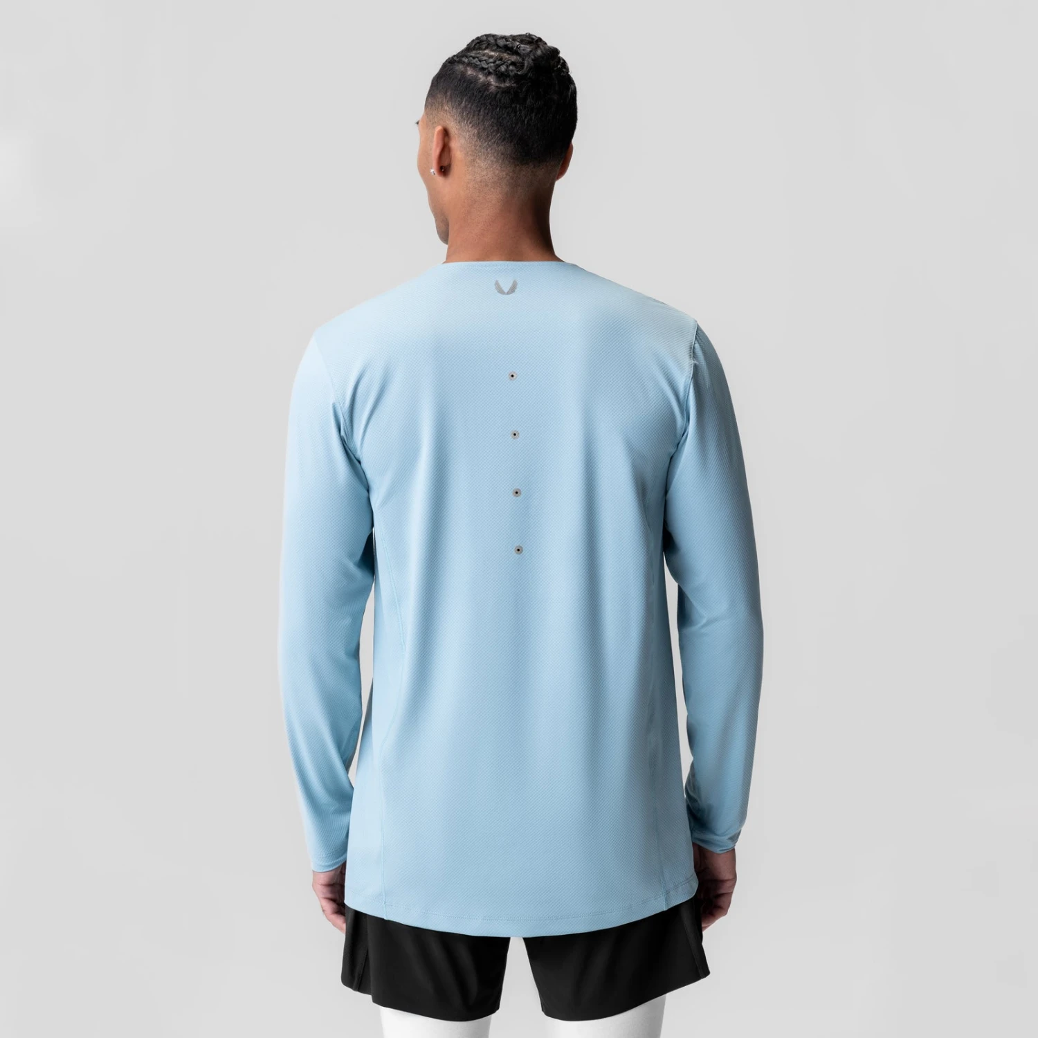 Elevated performance in a refined aesthetic. Constructed from our high-performance Nano-Mesh with Silver+ Ion anti-odor technology. Heat-pressed ventilation holes along the spine provide enhanced breathability. Clean, minimalist neck hem. Ergonomic body gusset panels and subtle swoop hem create the perfect fit. Reflective strips and branding increase visibility at night.