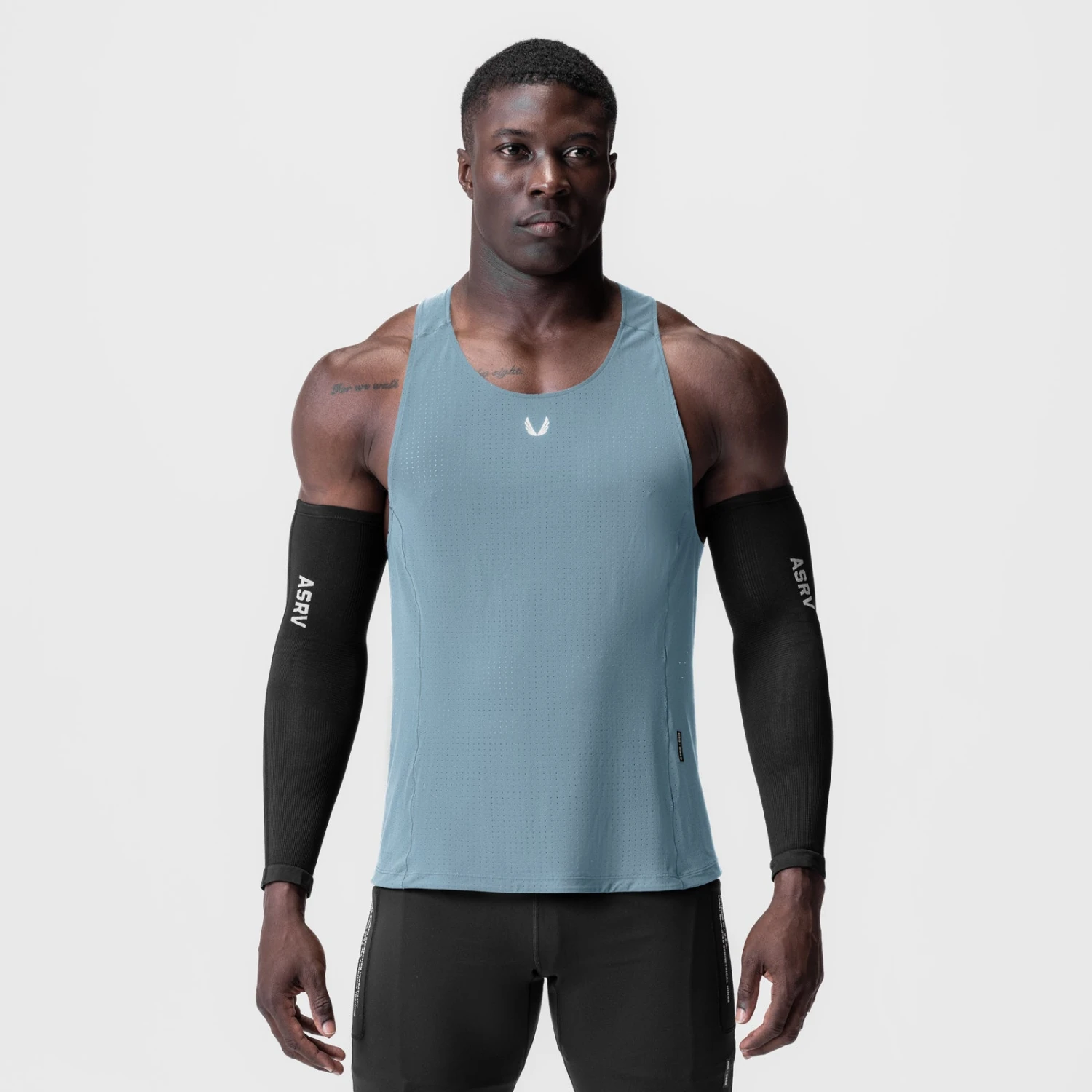 Lightweight, perforated singlet tank for high-intensity training. Our new Laser-Vent™ fabric is a soft, smooth performance warp-knit with extreme stretch and shape retention. It features a treatment that adds antibacterial and moisture-wicking properties. It is strategically perforated in high-sweat areas, with a non-perforated panel across the chest for full coverage. The tank features an ergonomic extended hem for the perfect fit while moving. Reflective details add high-vis function at night.