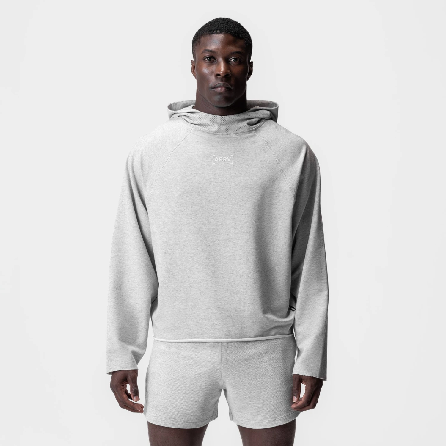 Versatile scuba-neck hoodie with raw hems for a rugged aesthetic. Constructed from Micro-Terry, a soft, mid-weight terry fabric infused with AeroSilver® antimicrobial threads for anti-odor effect. Featuring a two-layer hood for added weight and structure with antimicrobial mesh. Raglan sleeve design allows for total freedom of movement.