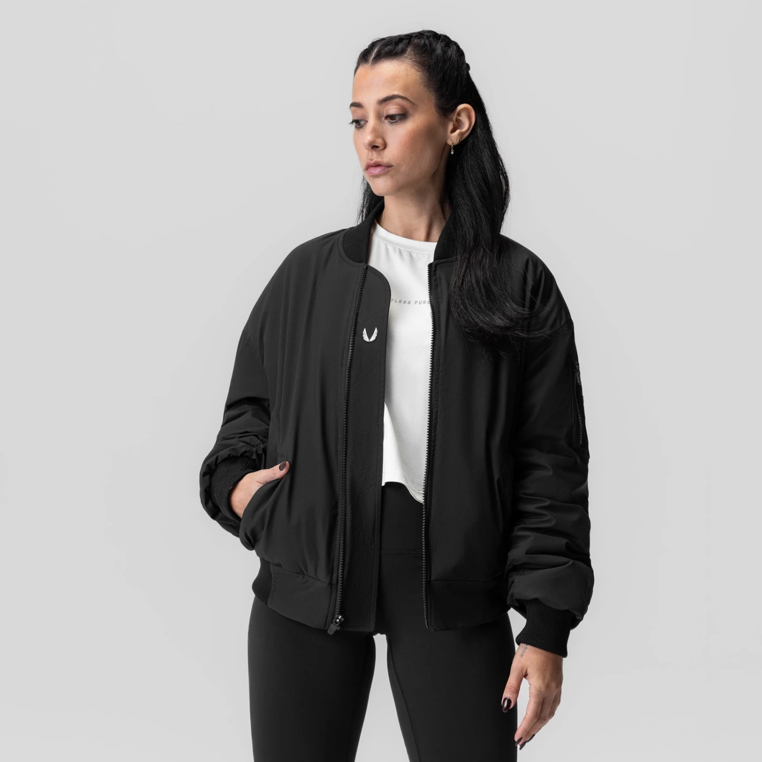 Innovation on a classic. This iconic bomber style combines timeless design with modern functionality. Crafted with a water-resistant, Korean-milled ripstop outer shell and lined with luxurious Poly BOA Sherpa in the iconic Akira Red colorway, this jacket offers both protection and warmth. Thoughtful details include two zippered hand pockets, an internal pocket for secure storage, a convenient arm pocket, and a custom YKK Vislon® zipper for smooth, reliable function.