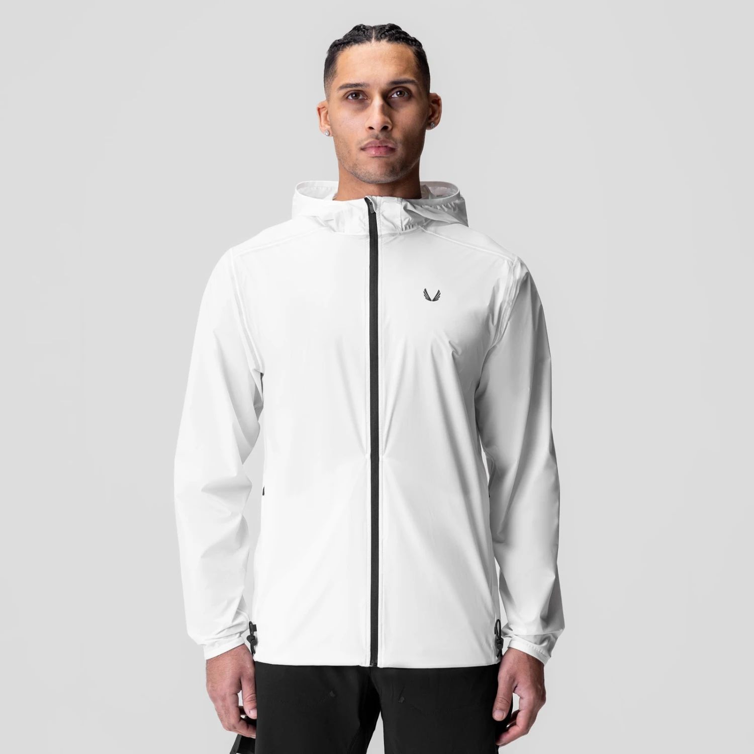 This true windbreaker is built for lightweight, weather-ready functionality. Crafted from Korean-milled AeroTex™ fabric with a water-resistant DWR finish, it features a fully seam-taped construction, an adjustable hood, and invisible zipper pockets for a streamlined look. Dual cinch systems provide a customizable fit, while reflective detailing ensures visibility in low-light conditions. The clean-finish body hem construction adds a refined touch, making this windbreaker ideal for running, light weather protection, and recreational activities.