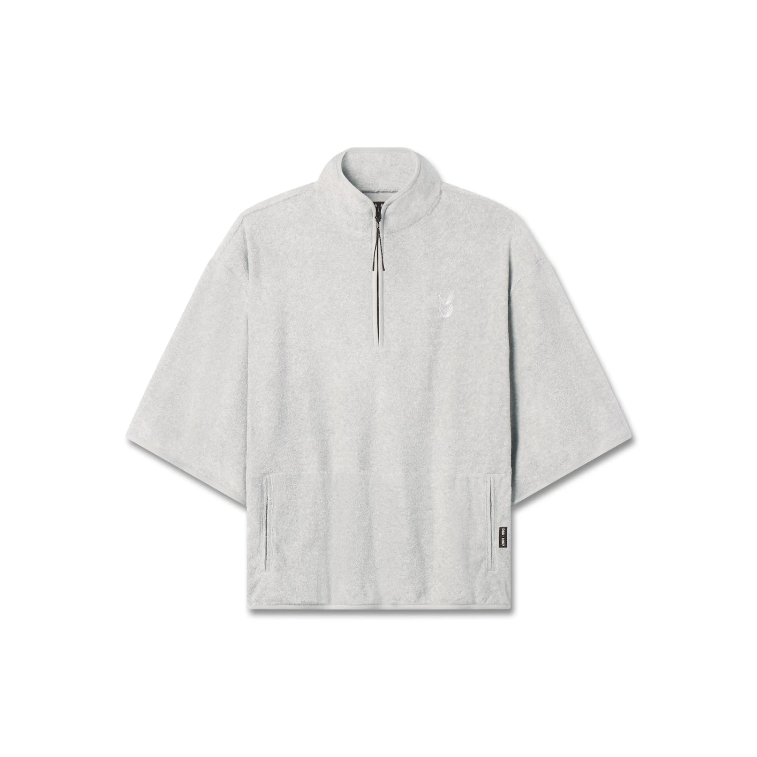 This oversized 3/4 pullover is designed with towel looped fabrication and textured detailing for a relaxed, yet elevated look. Features elastic binding at the hems, two front hand pockets, and a high collar for a modern silhouette. A reflective heat-pressed back vent panel ensures breathability. Enhanced with Polygiene® anti-odor technology for maintaining freshness over prolonged use. Finished with an embroidered front logo, this piece is designed for versatility in training or recreational settings.