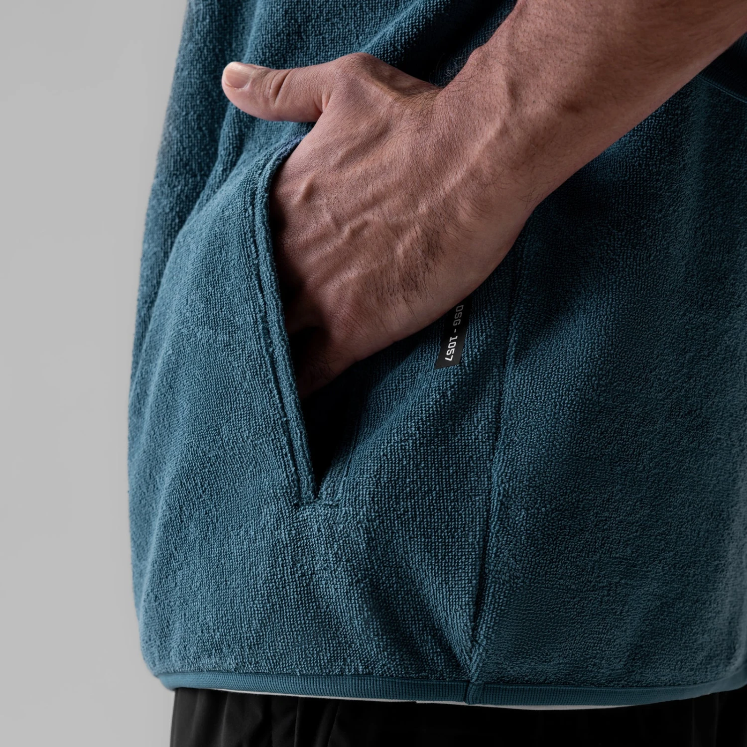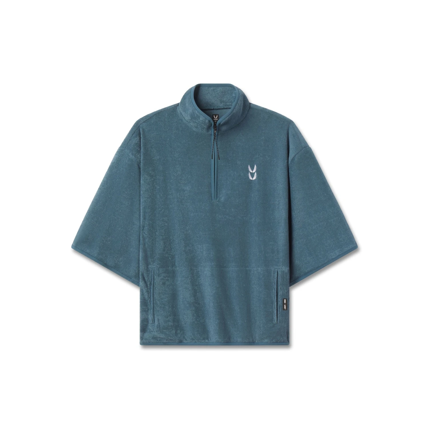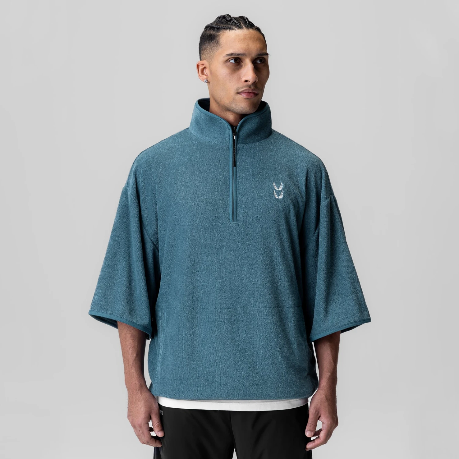 This oversized 3/4 pullover is designed with towel looped fabrication and textured detailing for a relaxed, yet elevated look. Features elastic binding at the hems, two front hand pockets, and a high collar for a modern silhouette. A reflective heat-pressed back vent panel ensures breathability. Enhanced with Polygiene® anti-odor technology for maintaining freshness over prolonged use. Finished with an embroidered front logo, this piece is designed for versatility in training or recreational settings.