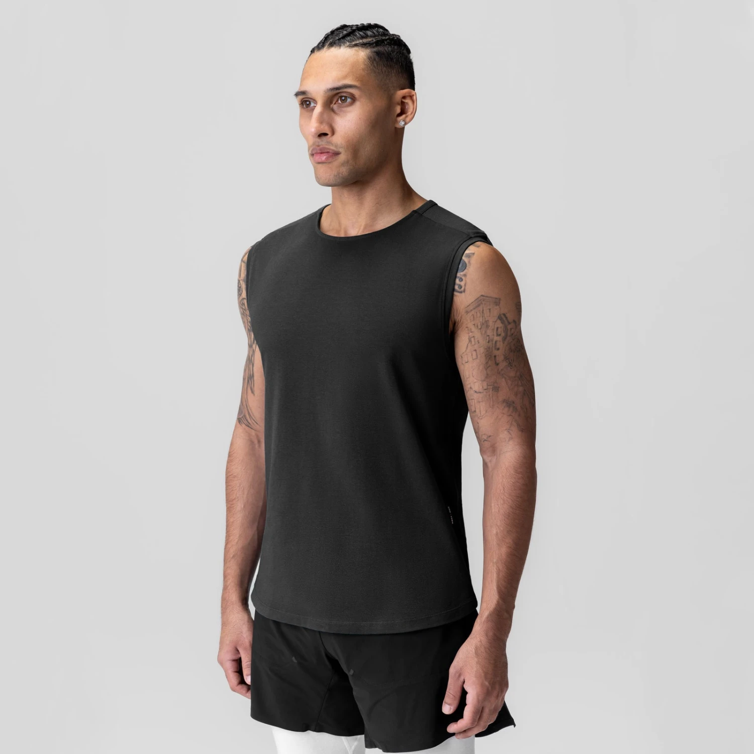 Versatile lightweight cutoff tank constructed from Creora® EasyFlex, a cotton fabric blend that offers a unique combination of comfort, flexibility, and durability. Sleek neck construction blends minimal and self-binding elements for a hybrid aesthetic. Finished with reflective branding for visibility, this cutoff tank is perfect for training, running, or everyday wear.