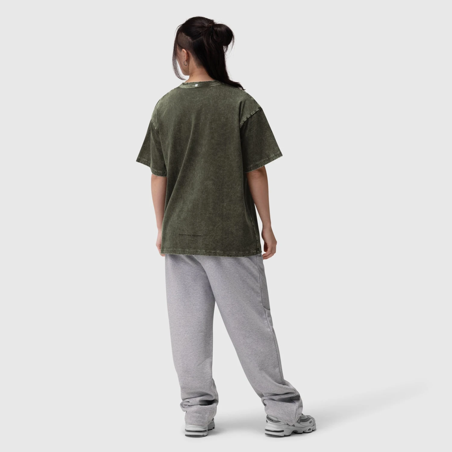 Relaxed-fit tee that blends vintage styling with modern comfort. Constructed from a midweight cotton blend with a soft, worn-in feel and finished with garment-dyed distressing for a washed look. Designed with drop shoulders, wide sleeves, and subtle neckline abrasion for a broken-in aesthetic. A unisex silhouette with elevated detailing, ideal for training or everyday wear.
