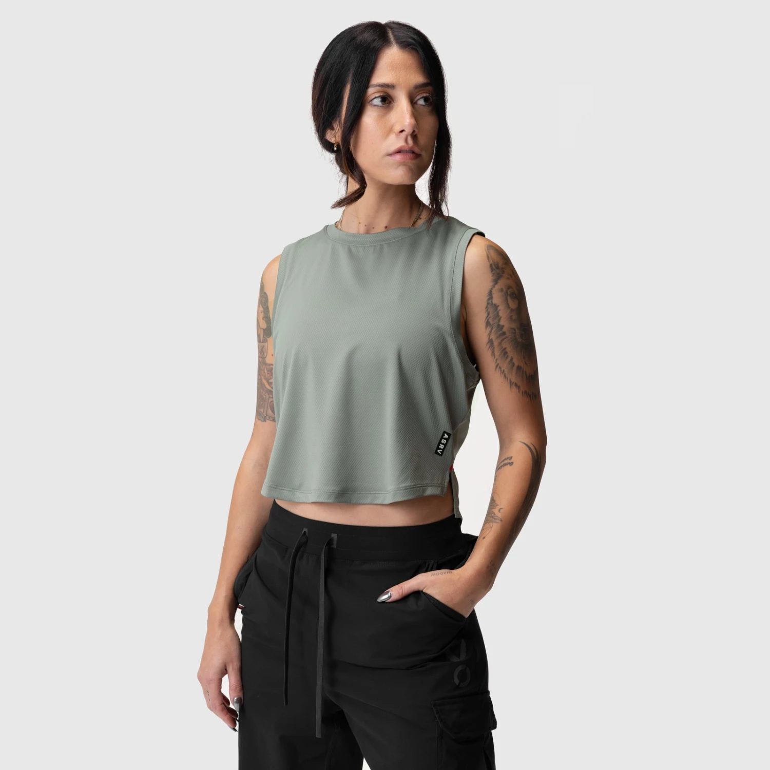 Lightweight mid-crop training tank designed with a curved hem. Made from AeroSilver®, our next generation of silver-infused performance fabric, offers enhanced durability and fiber strength to withstand intense training sessions. The tank features side splits with reinforced tack seams for added flexibility, while reflective logo details provide increased visibility during low-light workouts.