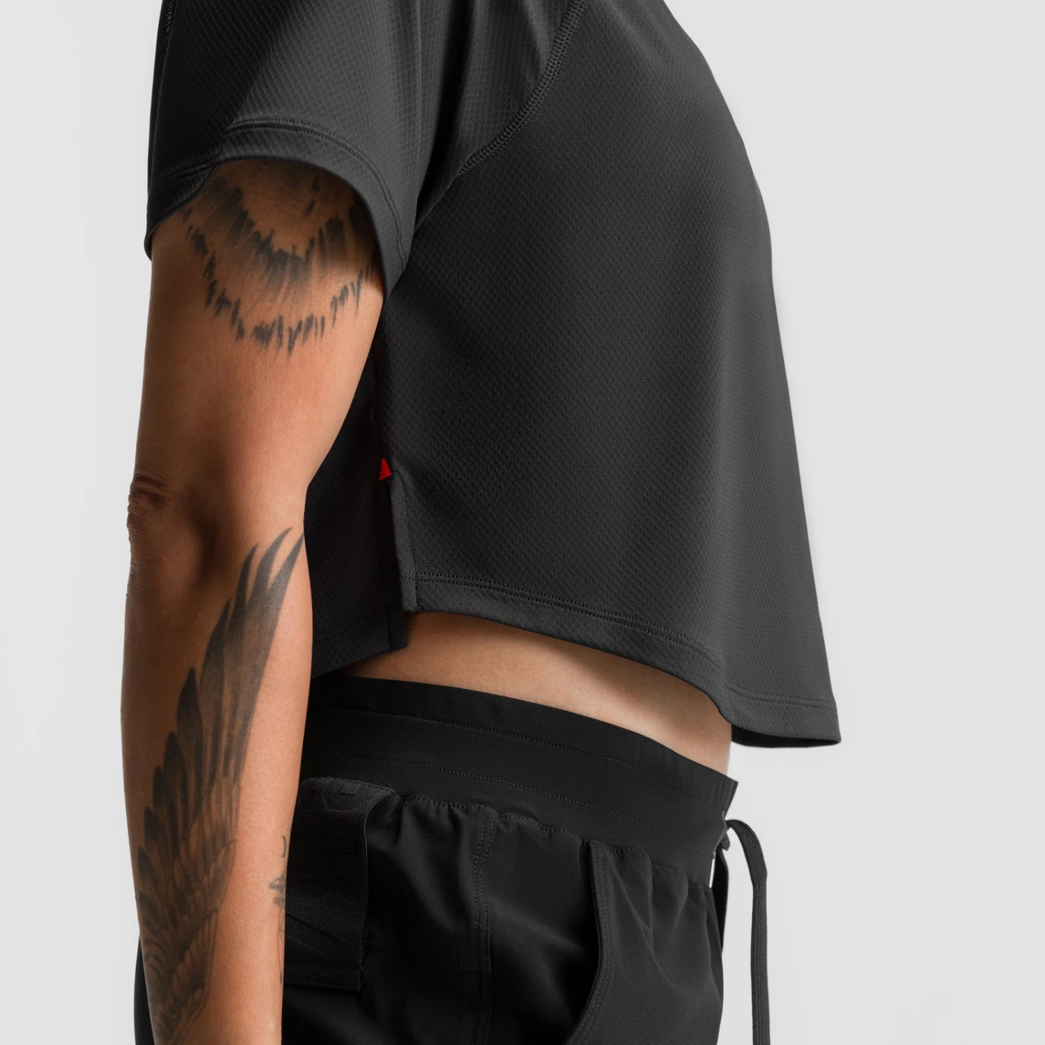 Lightweight mid-crop training tee designed with a curved hem. Made from AeroSilver®, our next generation of silver-infused performance fabric, offers enhanced durability and fiber strength to withstand intense training sessions. The tee features side splits with reinforced tack seams for added flexibility, while reflective logo details provide increased visibility during low-light workouts.
