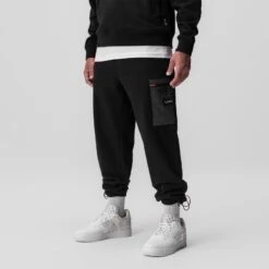 0914. Tech-Terry™ Paneled Cinch Cargo Jogger – Black/Wave-Dye