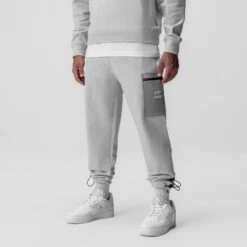 0914. Tech-Terry™ Paneled Cinch Cargo Jogger – Heather Grey/Wave-dye