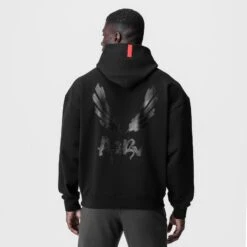 0874. Tech-Terry™ Zip Pocket Hoodie – Black “Brush Wings/ASRV”