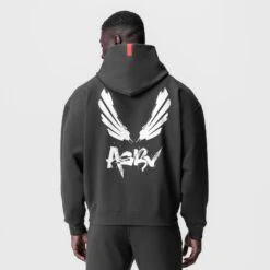 0874. Tech-Terry™ Zip Pocket Hoodie – Space Grey/Black “Brush Wings/ASRV”