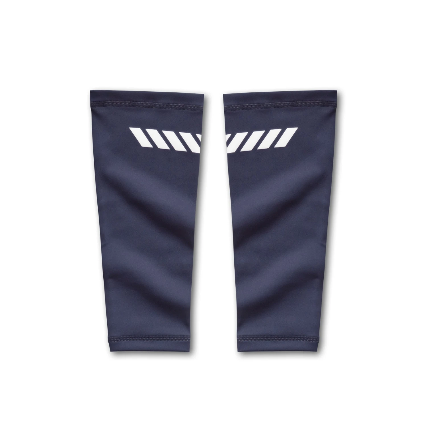 Tapered calf sleeves for mild compression and warmth. WarpFlexx® material is super soft, sweat-wicking, and 4-way stretch. White reflective strips provide high-vis function for night training. Flatlock seam construction adds comfort against skin. Finished with Polygiene® anti-odor technology. Comes in a pack of two.