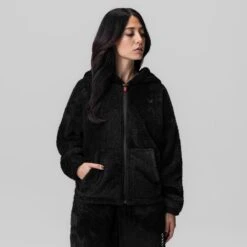 1005. Women’s Sherpa Recovery Full Zip Hoodie – Ivory Cream/Black